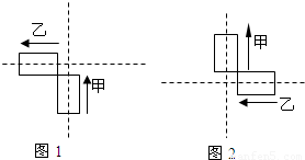 据统计,城市交通事故大多因违章引起,在如图所示中,甲、乙两辆汽车分别在相互垂直的道路上,沿各自道宽的中心线(图中虚线所示)向前匀速行驶,当甲、乙两车的车头到十字路口(道路中心线)的距离分别为30m、40m时,道口恰处于红、绿灯转换甲、乙两车均未采取任何减速或制动等措施,以致两车相撞.已知两车型号相同,汽车的车长为5.2m,车宽为1.76m.并已知甲车的车速为v1=40km/h,设两车相撞前均匀速行使.试判断在穿过路口过程中,乙车车速的范围.