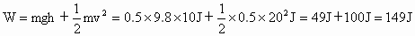 质量是500g的足球被踢出后,某人观察它在空中的飞行情况,估计上升的最大高度是10m,在最高点的速度为20m/s.根据这个估计,计算运动员踢球时对足球做的功.