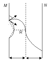 (1)N板上恰出现一个亮斑时,两束质子的轨迹如图所示,设轨迹的半径为R.
