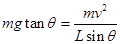 向心力大小为:Fn=mgtanθ,小球做圆周运动的半径为:R=Lsinθ,则由牛顿第二定律得: