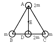 如图所示,有一等边三角形ABC,在B、C两点各放一个质量为m的小球,在A点放一个质量为2m的小球.这些球组的重心在何处.