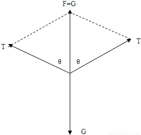 2Tcosθ=mg