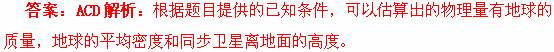 (2013河南三市联考)地球同步卫星绕地球做匀速圆周运动,已知其轨道半径为r,同期为T,引力常 量为G,地球表面的重力加速度为g。根据题目提供的已知条件,可以估算出的物理量有