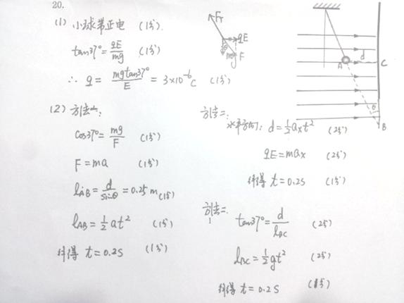(2)此时小球的右侧距小球d=15cm的地方有一块与电场垂直的平板,求剪断细线后经过多长时间小球到达该板。