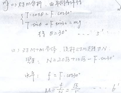 N,拉着球带动木块一起向右匀速运动,运动中M、m相对位置保持不变,取g=10m/s2。求: