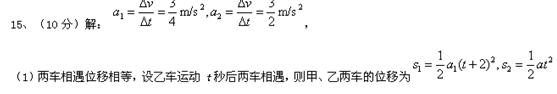 (10分)甲、乙两车从同一地点出发同向运动,其图象如图所示.试计算: