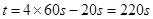 2012年12月28日,武汉地铁2号线正式通车。已知相距4000 m的甲乙两站之间的线路为直线,在调试运行时,列车出站加速和进站减速的加速度大小均为1 m/s2,中途保持匀速运行。列车从甲站由静止出发到乙站停止正好用时4 min。某次调试时,列车从甲站出发比原定的出发时间晚了20 s,但仍保持与原来相同的加速度出站和进站,要使列车仍然准点到达乙站,求此次列车出站加速的时间应为多少?