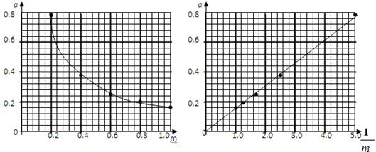 ⑴根据表中的数据,在图中所示的坐标中描出相应的实验数据点,并作出a-m图象和a-1/m图象。