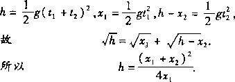 石块A自塔顶自由落下x1时,石块B自离塔顶x2处自由落下,两石块同时落地,则塔高为