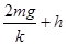 如图所示,质量均为m的A、B两物体,用劲度系数为k的轻质弹簧相连,A被手用外力F提在空中静止,B离地面高度为h,放手后,A、B下落,且B与地面碰撞后不反弹,则当弹簧的弹力为mg时,物体A下落的距离是______________。
