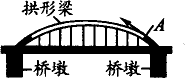 轻轨“明珠线”的建成,缓解了徐家汇地区交通拥挤状况.请在图上画出拱形梁在A点的受力示意图.这种拱形桥的优点是________.