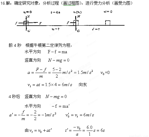 一个静止在水平面上的物体,质量是2kg,在水平方向5N向东的拉力作用下由静止开始运动,物体跟水平面的滑动摩擦力大小是2N。求: