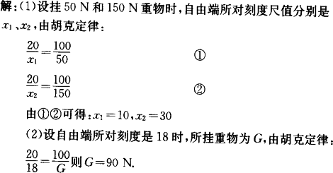 (1)当弹簧分别挂50 N和150 N重物时,自由端所对刻度是多少?