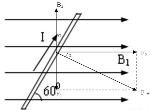 根据题意“导线平行于纸面与B1成60的夹角时,发现其不受安培力”