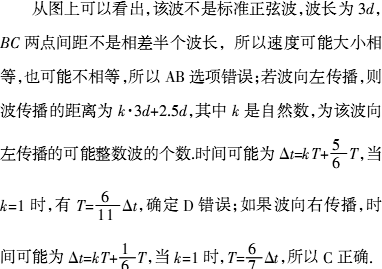 t时刻和t+Δt时刻的波形曲线.B和C是横坐标分别为d和3 d的两个质点,下列说法中不正确的是A.