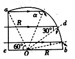 如图所示acb是一块用折射率n=2的玻璃制成的透明体的横截面,ab是半径为R的圆弧,ac边与bc边垂直,∠aOc=60°.当一束平行黄色光垂直照到ac上时,ab部分的外表面只有一部分是黄亮的,其余是暗的.那么黄亮部分的弧长为.( )