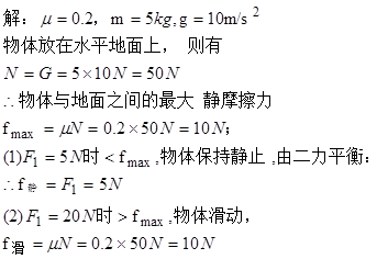 (2)当水平拉力F2=20N,作用在物体上时,物块是静止还是滑动?所受摩擦力多大?