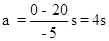 汽车以20m/s的速度做匀速运动,某时刻关闭发动机而做匀减速直线运动,加速度大小为5m/s2,则它关闭发动机后5秒内的路程为