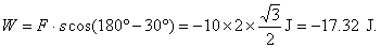 图中表示物体在力F作用下在水平面上发生一段位移s,试分别是计算在这三种情况下力F对物体所做的功.设在这三种情况下力、位移的大小都相同F=10 N,s=2 m.角θ的大小如图注中所示.![]()