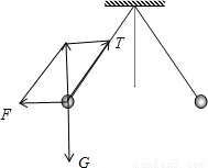 解答:解:对其中一个小球受力分析,小球受重力、拉力及库仑力而处于平衡状态;