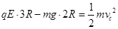 如图所示,光滑水平轨道与半径为R的光滑竖直半圆轨道在B点平滑连接。在过圆心O的水平界面MN的下方分布有水平向右的匀强电场。现有一质量为m,电量为+q的小球从水平轨道上A点由静止释放,小球运动到C点离开圆轨道后,经界面MN上的P点进入电场(P点恰好在A点的正上方,如图。小球可视为质点,小球运动到C点之前电量保持不变,经过C点后电量立即变为零)。已知A、B间距离为2R,重力加速度为g。在上述运动过程中,求: