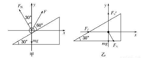 (2)如图乙,以水平方向为x轴,对劈进行受力分析.