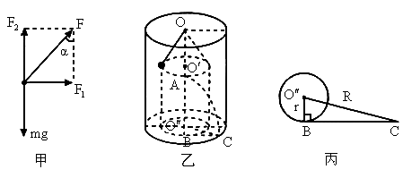 解:取小球为研究对象,设绳刚要断裂时绳与竖直方向夹角为α,受力如图甲所示.