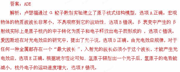 F.根据玻尔理论可知,氢原子辐射出一个光子后,氢原子的电势能增大,核外电子的运动加速度增大