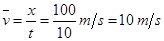 试题分析:由于运动员参加100m赛跑,故运动员的位移为x = 100m,10s末运动员到达终点,故运动时间为t = 10s.根据平均速度公式