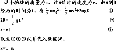 如图所示,一固定在竖直平面内的光滑的半圆形轨道ABC,其半径R=0.5 m,轨道在C处与水平地面相切.在C处放一小物块,给它一水平向左的初速度v0=5 m/s,结果它沿CBA运动,通过A点,最后落在水平地面上的D点,求C、D间的距离x.(取重力加速度g=10 m/s2)