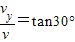 £¨3£©Éè°å¼äËù¼ÓµçѹΪU£¬³öÔÈÇ¿µç³¡Ê±µÄÊúÖ±·½ÏòËÙ¶ÈΪvy£¬ÓÉÆ«×ª½ÇΪ30°¿ÉµÃ£º
