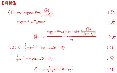 (2013ÄêÕã½ÎåУÁª¿¼)ÈçͼËùʾ£¬Çãб½Ç¶ÈΪ¦ÈµÄ´Ö²Ú³Ì¶È¾ùÔȵľøÔµÐ±Ã棬Ï·½Oµã´¦ÓÐÒ»´øµçÁ¿Îª+QµÄµãµçºÉ£¬ÖÊÁ¿Îªm¡¢´øµçÁ¿Îª-qµÄСÎïÌ壨¿É¿´³ÉÖʵ㣩ÓëÐ±Ãæ¼äµÄ¶¯Ä¦²ÁÒòÊýΪ¦Ì¡£ÏÖʹСÎïÌåÒÔ³õËÙ¶Èv0´ÓÐ±ÃæÉϵÄAµãÑØÐ±ÃæÉÏ»¬£¬µ½´ïBµãʱËÙ¶ÈΪÁ㣬ȻºóÓÖÏ»¬»Øµ½Aµã¡£Ð¡ÎïÌåËù´øµçºÉÁ¿±£³Ö²»±ä£¬¾²µçÁ¦³£ÊýΪk£¬ÖØÁ¦¼ÓËÙ¶ÈΪg£¬OA=OB=l¡£Çó£º