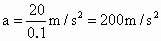 2000年8月18日,新闻联播中报道,我国空军研究人员在飞机零高度、零速度的救生脱险方面的研究取得成功.报道称:由于飞机发生故障大多数是在起飞、降落阶段,而此时的高度几乎为零高度.另外在飞行过程中会出现突然停机现象,在这种情况下,飞行员脱险非常困难,为了脱离危险飞行员必须在0.1s的时间内向上弹离飞机,若脱离飞机的速度为20m/s,试判断一下弹离过程中的加速度是______