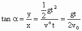 位移的方向与水平之方向的夹角为: