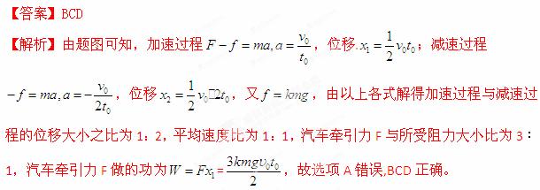(2013山东省名校质检)一辆质量为m的汽车在发动机牵引力F的作用下,沿水平方向运动。在t0时刻关闭发动机,其运动的v-t图象如图所示。已知汽车行驶过程中所受的阻力是汽车重量的k倍,则( )