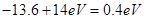 ,不能发生跃迁,B错误;基态的氢原子吸收14eV的光子,能量为