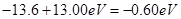 ,发生跃迁,C正确;基态的氢原子吸收13.00ev光子,能量为