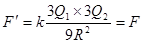 当Q1增大到3倍时,Q2增大为原来的3倍,而距离增大到原来的3倍时