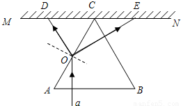 【答案】分析:(1)激光a垂直于AB边射向AC边的中点O时,由于光的反射和折射,在屏幕MN上出现两个光斑,由折射定律和折射定律作出光路图.