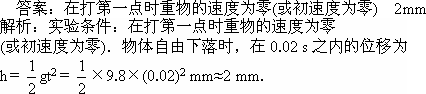 运用公式=mgh对实验条件的要求是________,为此目的,所选择的纸带1、2两点间的距离应接近________.