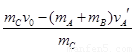 mCv0=(mA+mB)vA′+mCvC′ (3分)