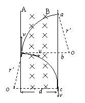 (2)切断开关S,并撤去金属网B,加上垂直纸面向里、范围足够大的匀强磁场,磁感应强度为B,设加上磁场后β粒子仍能到达荧光屏,且其运动轨迹半径r′>d ,则在荧光屏上发亮区的长度是多少?