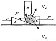 £¨8·Ö£©ÓÐÒ»ÖÖ»úеװÖýÐ×ö¡°¹öÖéʽÁ¦·Å´óÆ÷¡±£¬ÆäÔÀíÈçͼËùʾ£¬Ð±ÃæA¿ÉÒÔÔÚË®Æ½ÃæÉÏ»¬¶¯£¬Ð±ÃæBÒÔ¼°Îï¿éC¶¼ÊDZ»¹Ì¶¨µÄ£¬ËüÃǾùÓɸֲÄÖÆ³É£¬¸ÖÖéDÖÃÓÚABCÖ®¼ä£®µ±ÓÃˮƽÁ¦FÍÆÐ±ÃæAʱ£¬¸ÖÖéD¶ÔÎï¿éCµÄ¼·Ñ¹Á¦F/¾Í»á´óÓÚF£¬¹Ê³ÆÎª¡°¹öÖéʽÁ¦·Å´óÆ÷¡±£®Èç¹ûÐ±ÃæA¡¢BµÄÇã½Ç·Ö±ðΪ¦Á¡¢¦Â£¬²»¼ÆÒ»ÇÐĦ²ÁÁ¦ÒÔ¼°¸ÖÖé×ÔÉíµÄÖØÁ¦£¬Çó£º