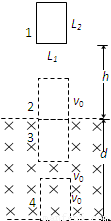 ÈçͼËùʾ£¬Ë®Æ½µÄƽÐÐÐéÏß¼ä¾àΪd£¬Æä¼äÓдŸÐӦǿ¶ÈΪBµÄÔÈÇ¿´Å³¡£®Ò»¸ö³¤·½ÐÎÏßȦµÄ±ß³¤·Ö±ðΪL1¡¢L2£¬ÇÒL2£¼d£¬ÏßȦÖÊÁ¿m£¬µç×èΪR£®ÏÖ½«ÏßȦÓɾ²Ö¹ÊÍ·Å£¬²âµÃµ±ÏßȦµÄϱßÔµµ½´Å³¡ÉϱßÔµµÄ¾àÀëΪhʱ£¬ÆäϱßÔµ¸Õ½øÈë´Å³¡ºÍϱßÔµ¸Õ´©³ö´Å³¡Ê±µÄËÙ¶ÈÇ¡ºÃÏàµÈ£®Ç󣺣¨1£©ÏßȦ¸Õ½øÈë´Å³¡Ê±µÄ¸ÐÓ¦µçÁ÷µÄ´óС£»