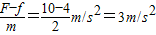 如图所示,用F=10N的水平拉力,使物体由静止开始沿水平地面做匀加速直线运动.已知物体的质量m=2.0kg,物体与地面间的摩擦力4N,求:(1)物体在t=2.0s时速度v大小.