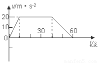 汽车由静止开始在平直的公路上行驶,0~60s内汽车的加速度随时间变化的图线如图所示。
