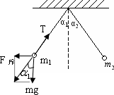 两个大小相同的小球带有同种电荷(可看作点电荷),质量分别为m1和m2,带电量分别是q1和q2,用两等长的绝缘线悬挂后,因静电力而使两悬线张开,分别与竖直方向成夹角α1和α2,如图所示,若α1=α2,则下述结论正确的是