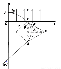 轴的匀强电场,方向沿y轴正方向;第Ⅳ象限的正三角形abc区域内有匀强磁场,方向垂直于xOy平面向里。正三角形边长为L,且