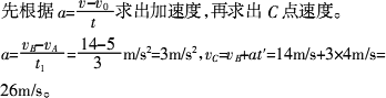 A点时的速度时5 m/s,经过3 s到达B点时的速度是14 m/s,再经过4 s到达C点,则它到达C点时的速度是________m/s.