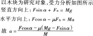 如图所示,位于水平面上质量为M的小木块,在大小为F、方向与水平方向成α角的拉力作用下沿地面做加速运动.若木块与地面之间的滑动摩擦系数为μ,则木块的加速度为